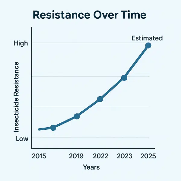 In Florida, southern chinch bugs have developed resistance to multiple insecticide classes, including pyrethroids (e.g., bifenthrin) and neonicotinoids (e.g., imidacloprid). Recent extension updates note that 2024 was among the most challenging seasons for control, with signs that pressure may continue.